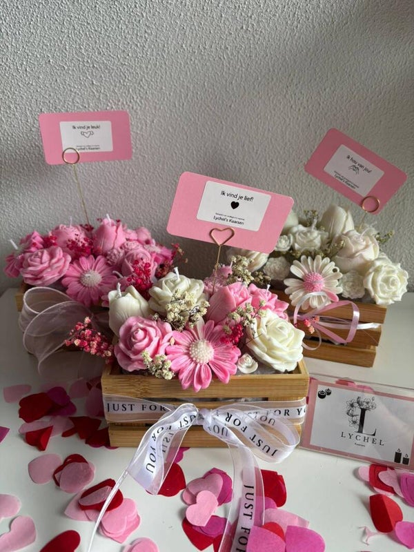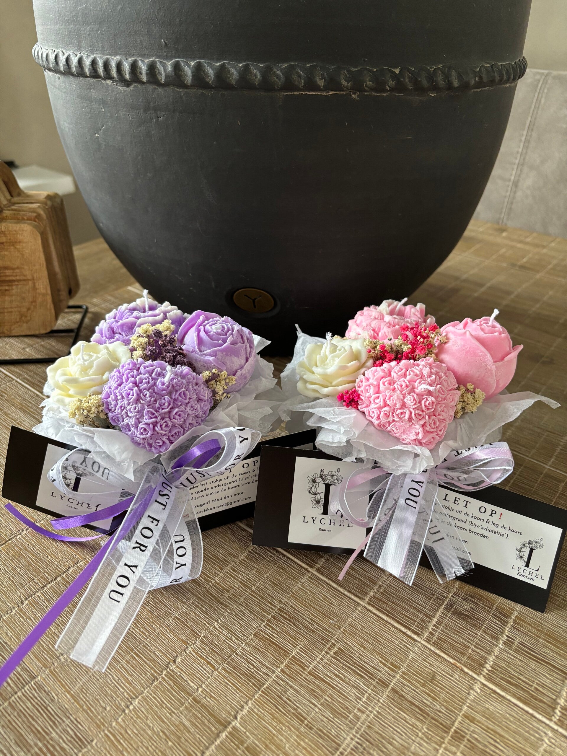 Deze bijzondere boeketten uit handgemaakte kaarsen in de vorm van verschillende bloemen. Elk boeket is uniek!